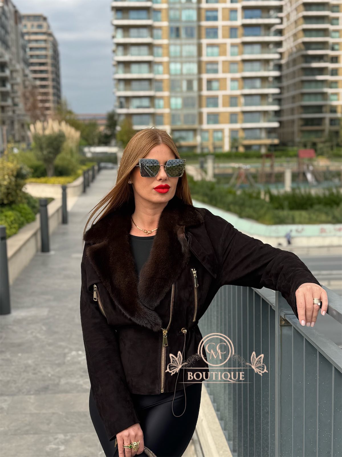 An exquisite leather jacket designed to make you look glamorous and stylish with every step you take. Crafted from the finest quality leather, this jacket is sure to make you stand out from the crowd.