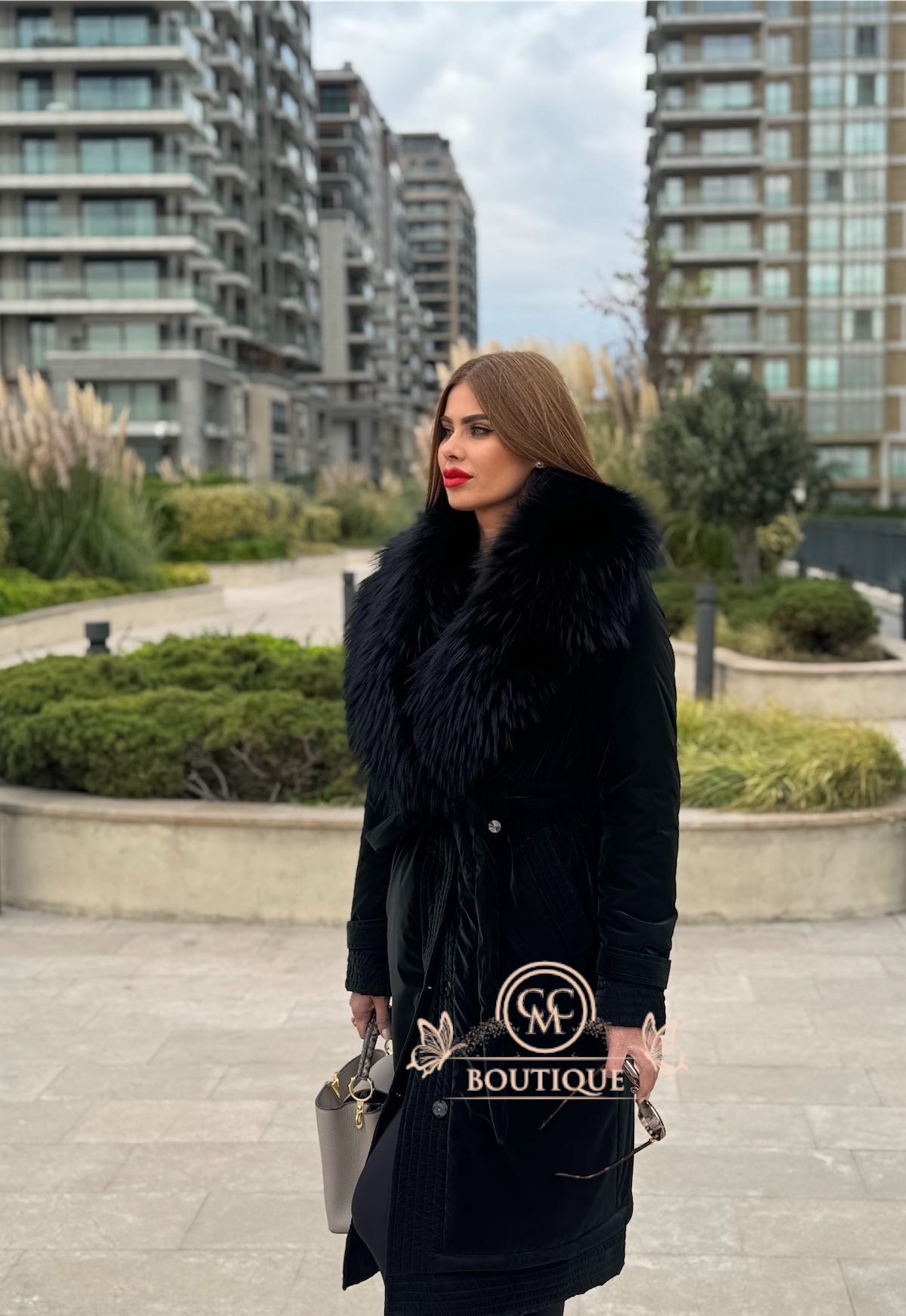 The argentinian natural fox fur collar , adds a touch of luxury, and the extremely low weight of the materials gives you the feeling that you are wearing nothing – only warmth and freedom.