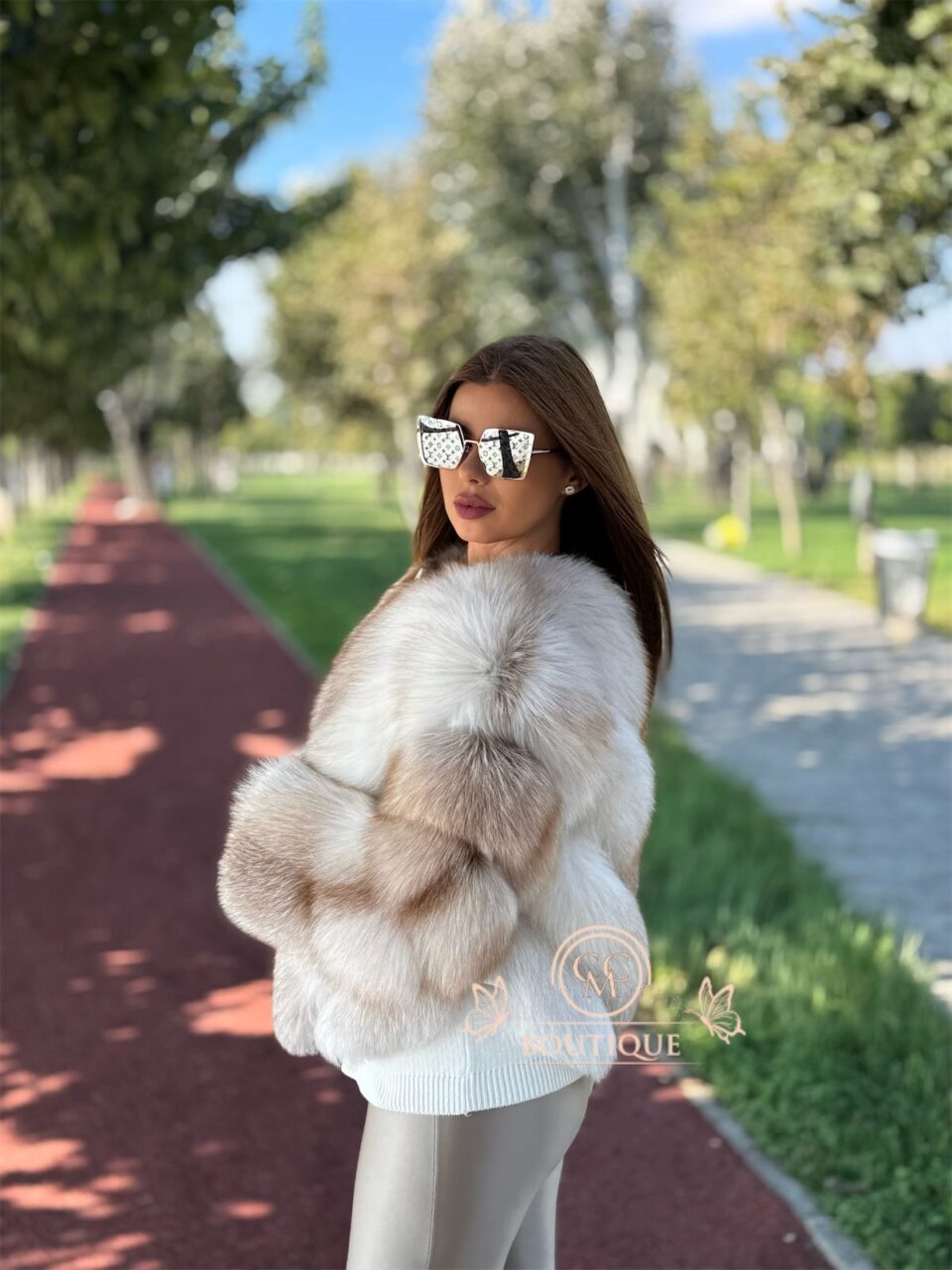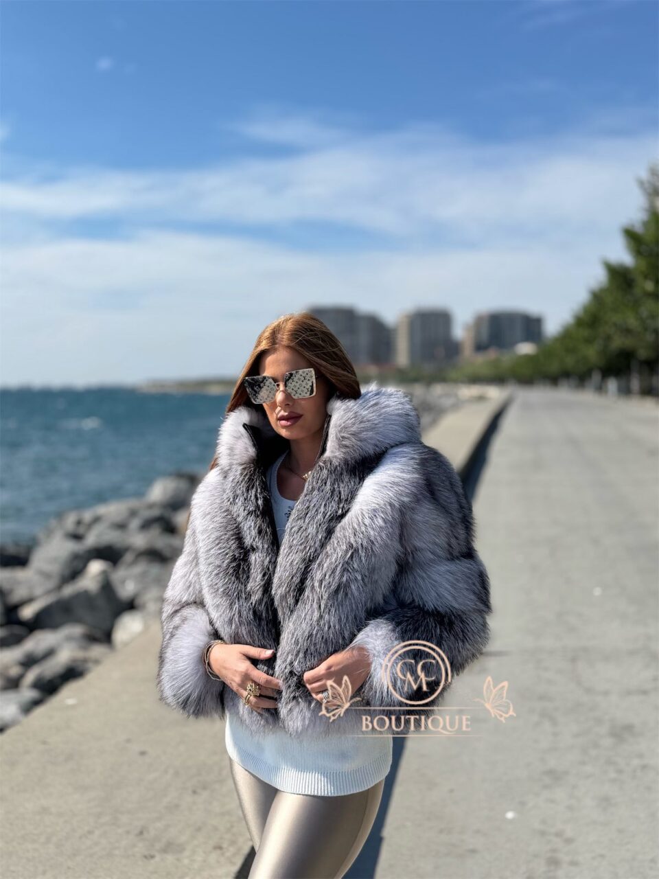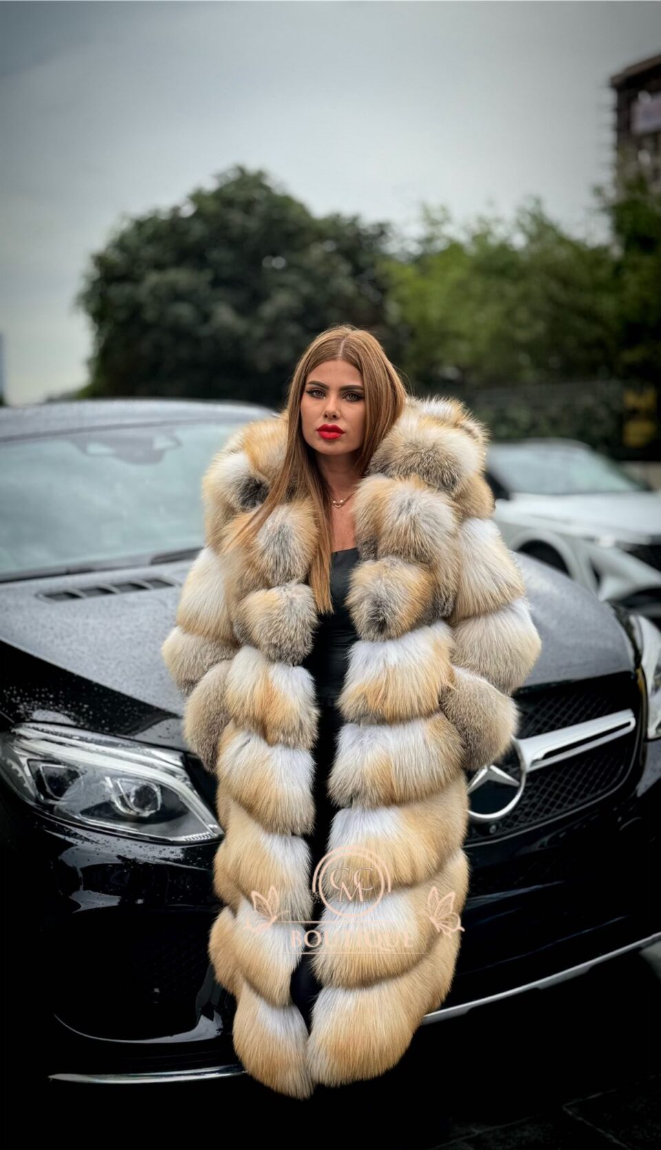 Cu un design în V și blană bogată de vulpe, acest model este expresia eleganței supreme!