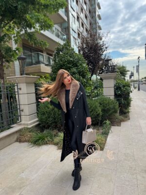 Vestă din piele naturală cu guler din blană naturală – model lung, croială elegantă, rafinament,......