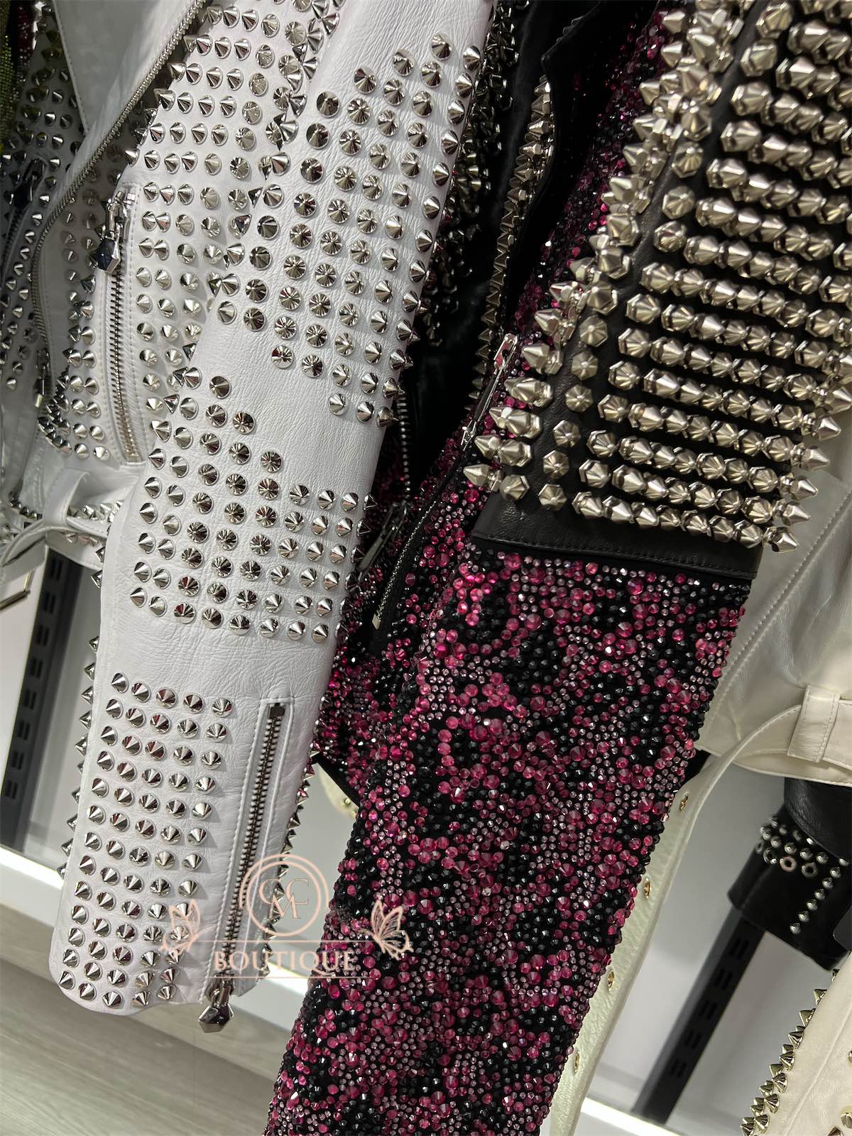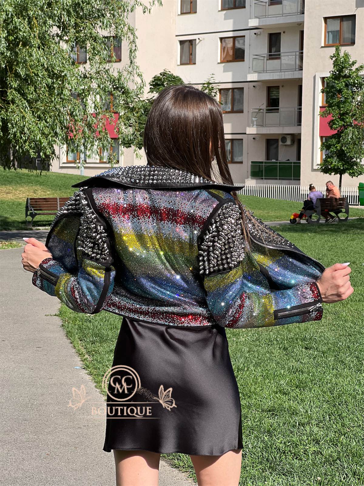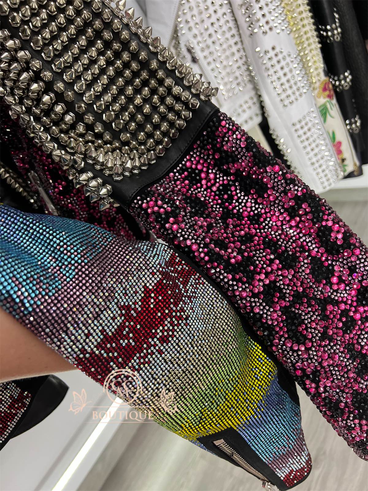 Geacă din piele exotică de piton, realizată manual, la comandă.