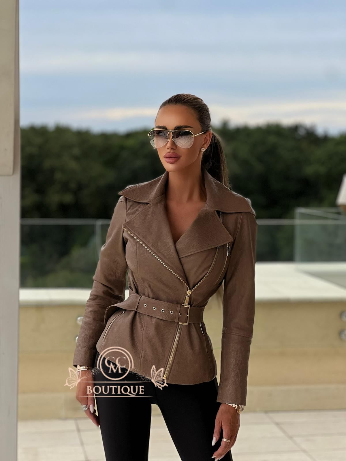 O jachetă din piele rafinată, concepută pentru a te face să arăți fermecătoare și elegantă la fiecare pas pe care îl faci.