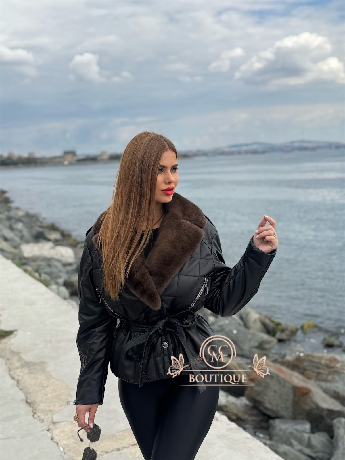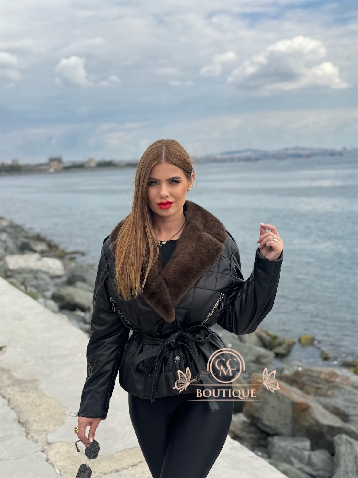O jachetă din piele rafinată, concepută pentru a te face să arăți fermecătoare și elegantă la fiecare pas pe care îl faci.