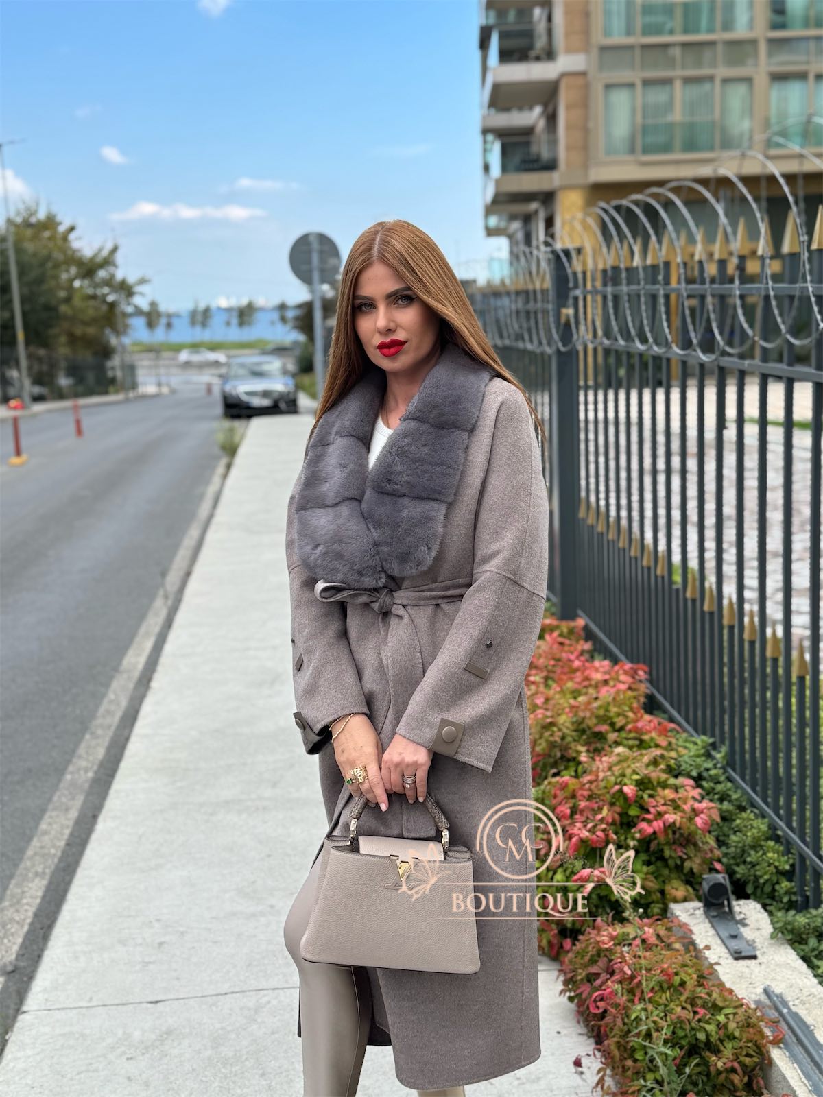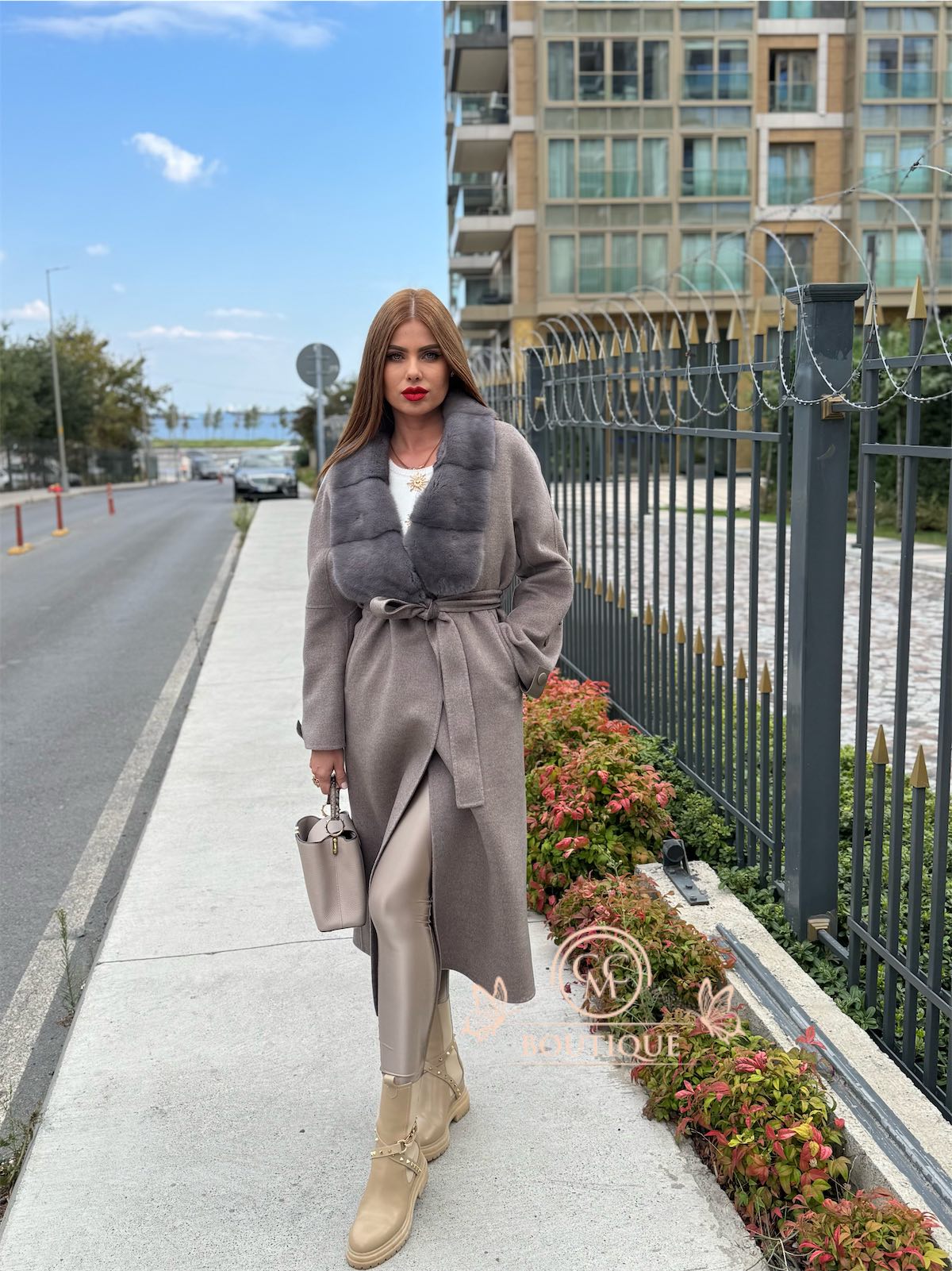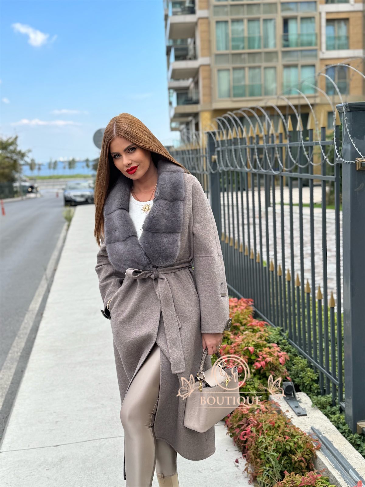 Palton clasic de lux, din lana pura, cu guler din nurca.