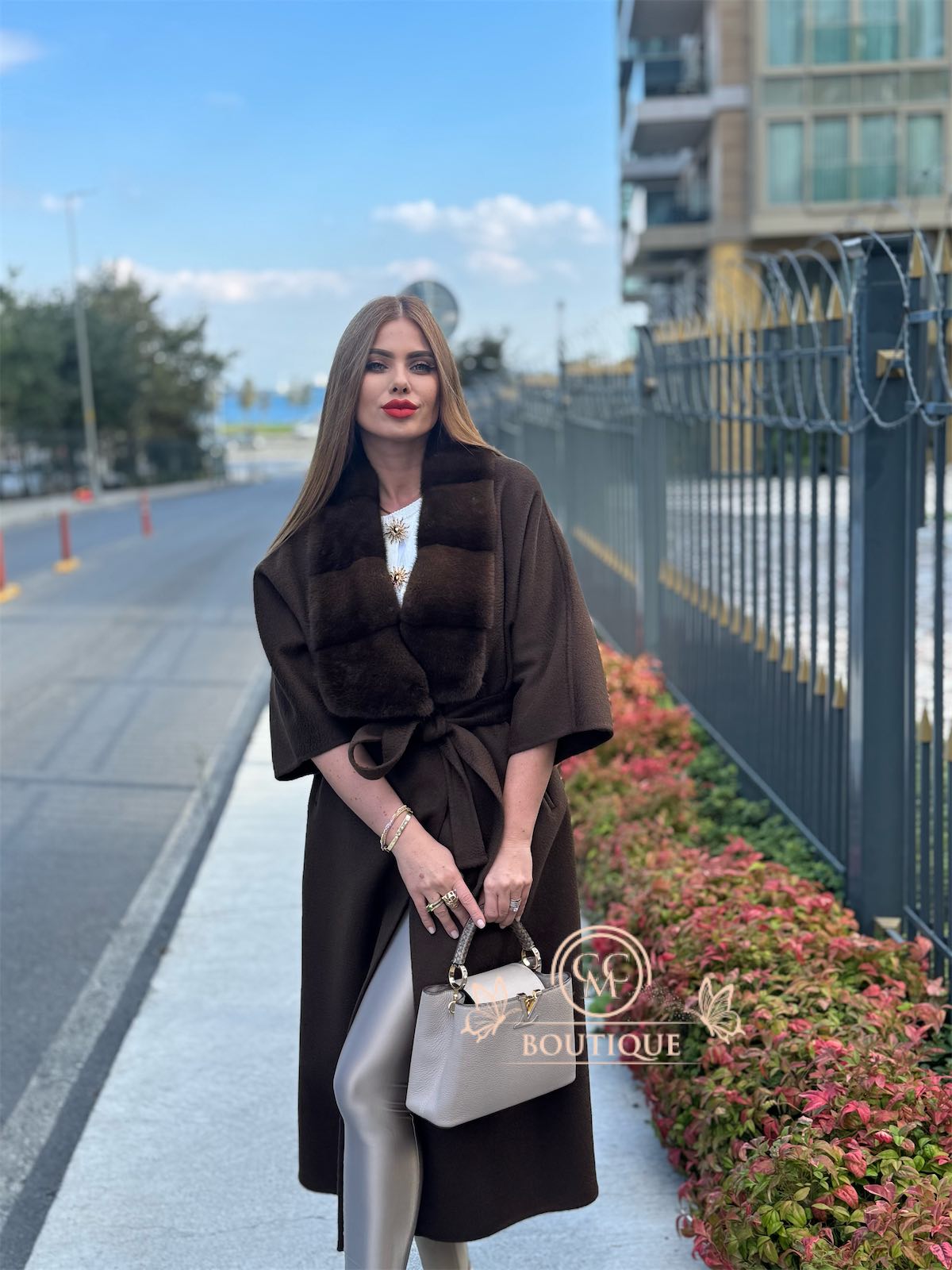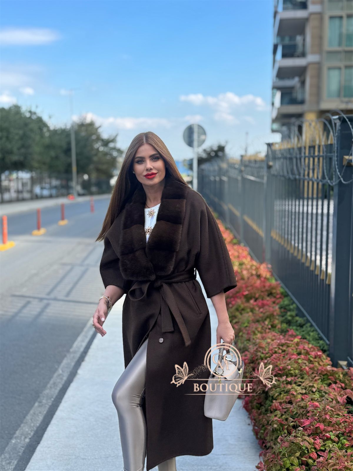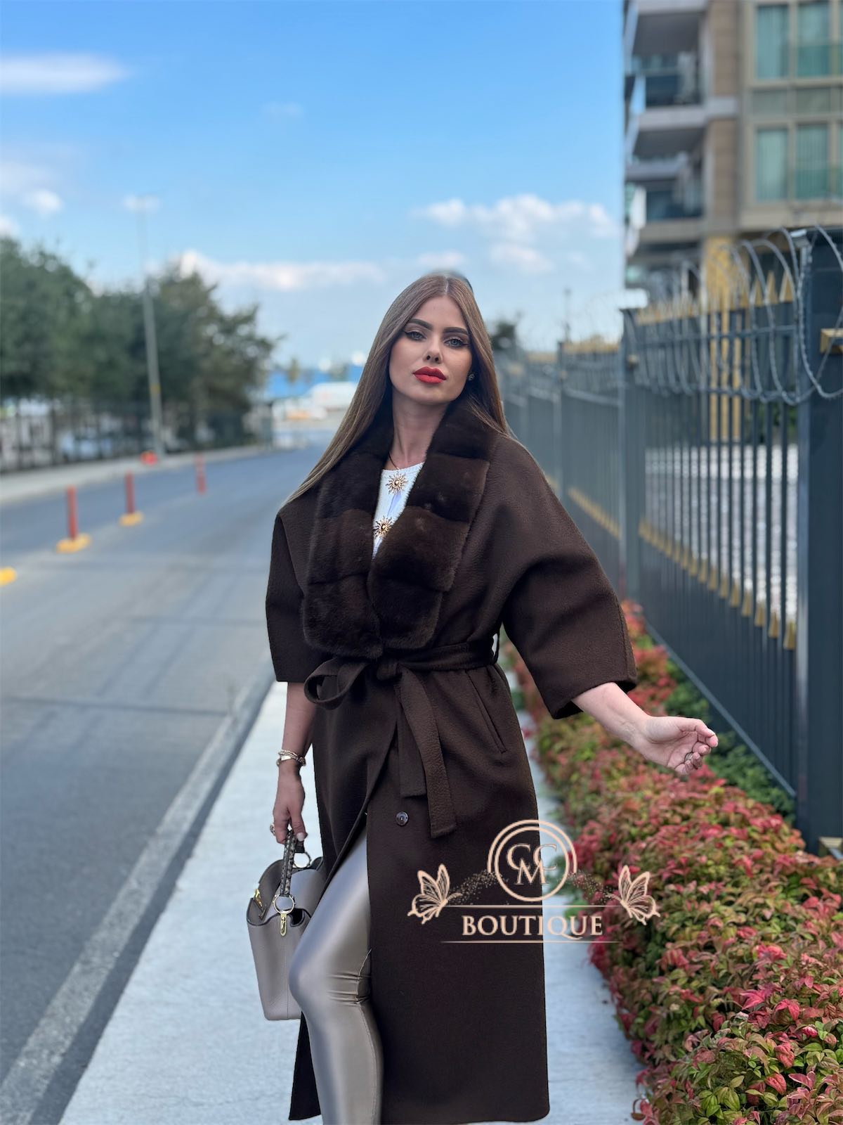 Palton clasic de lux, din lana pura, cu guler din nurca.