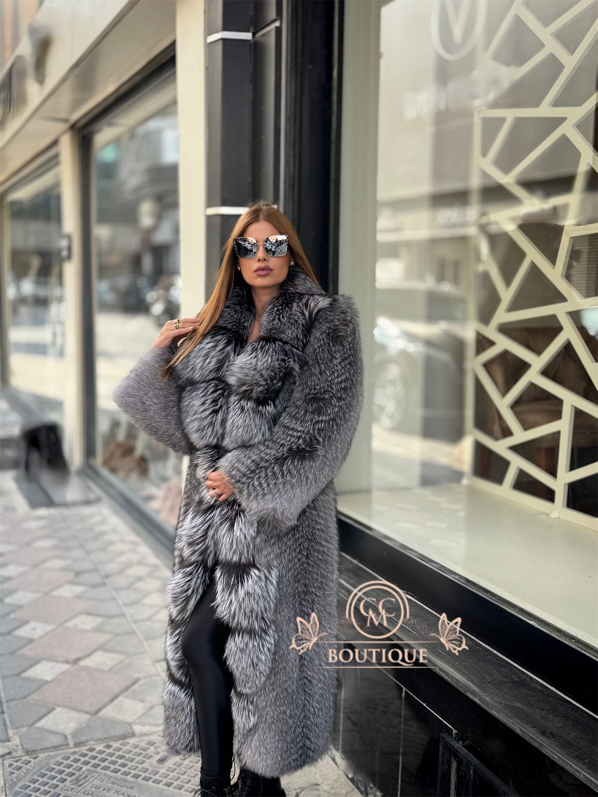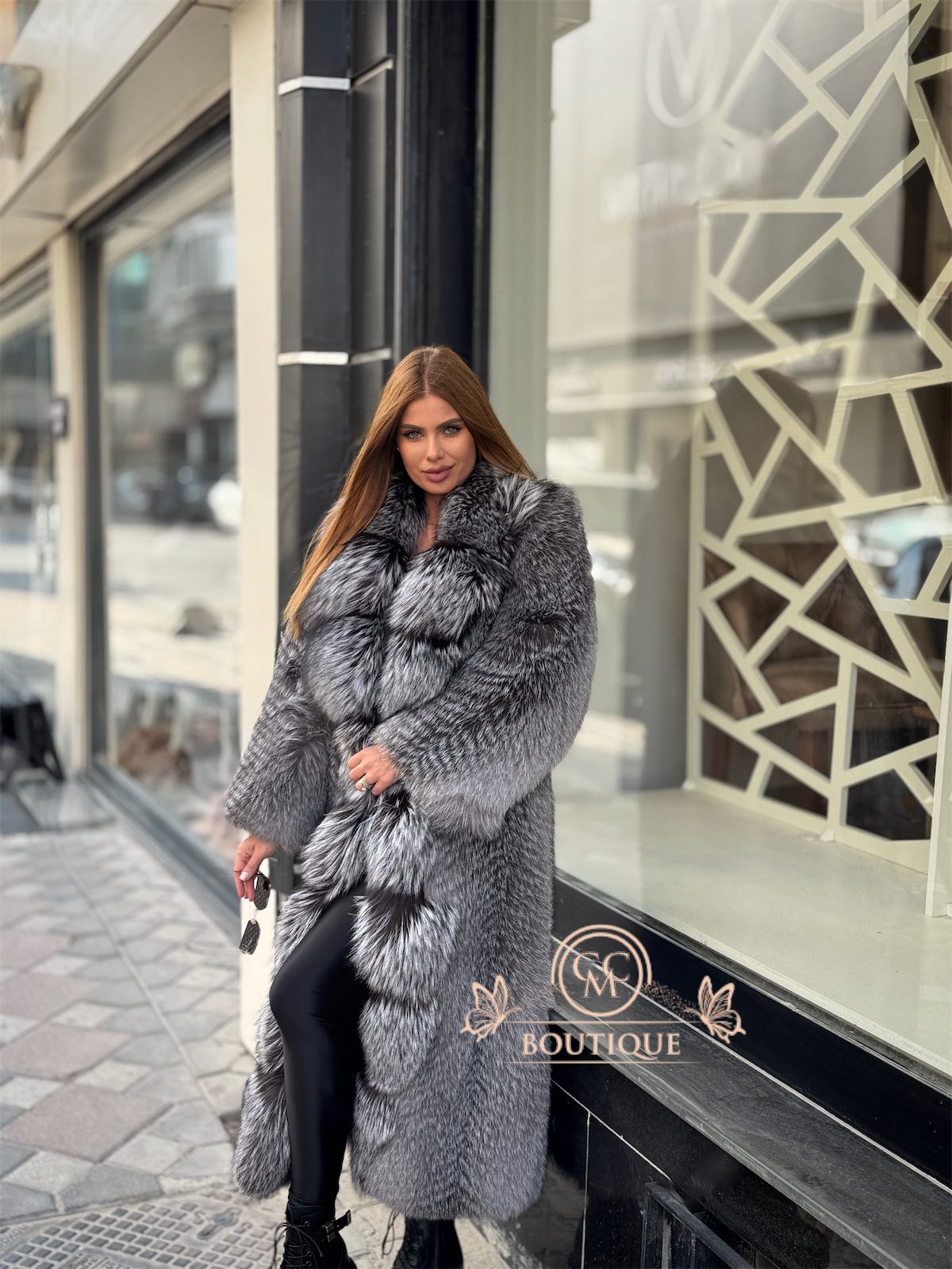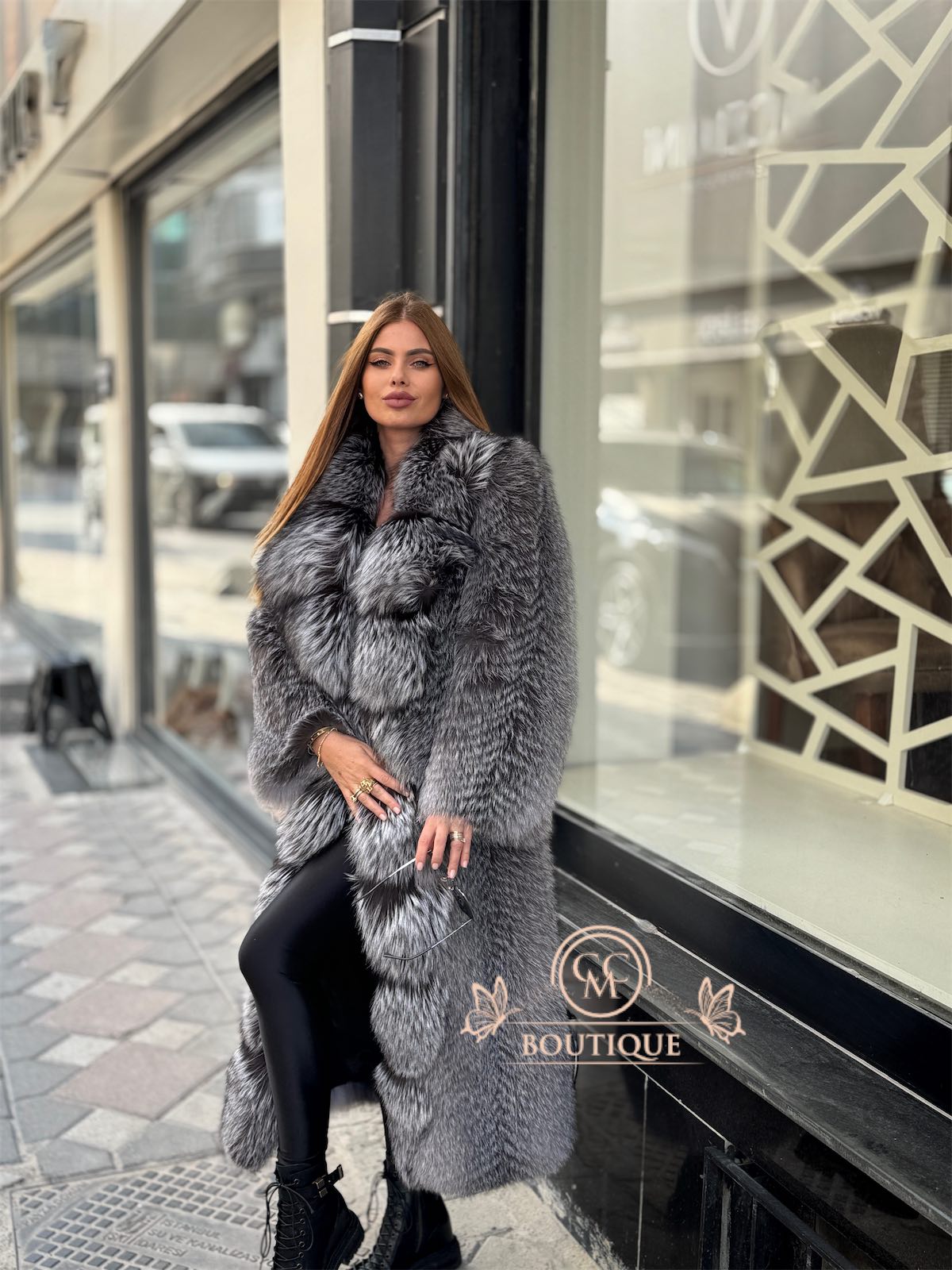 Imaginează-ți eleganța supremă într-o haină lungă din blană de