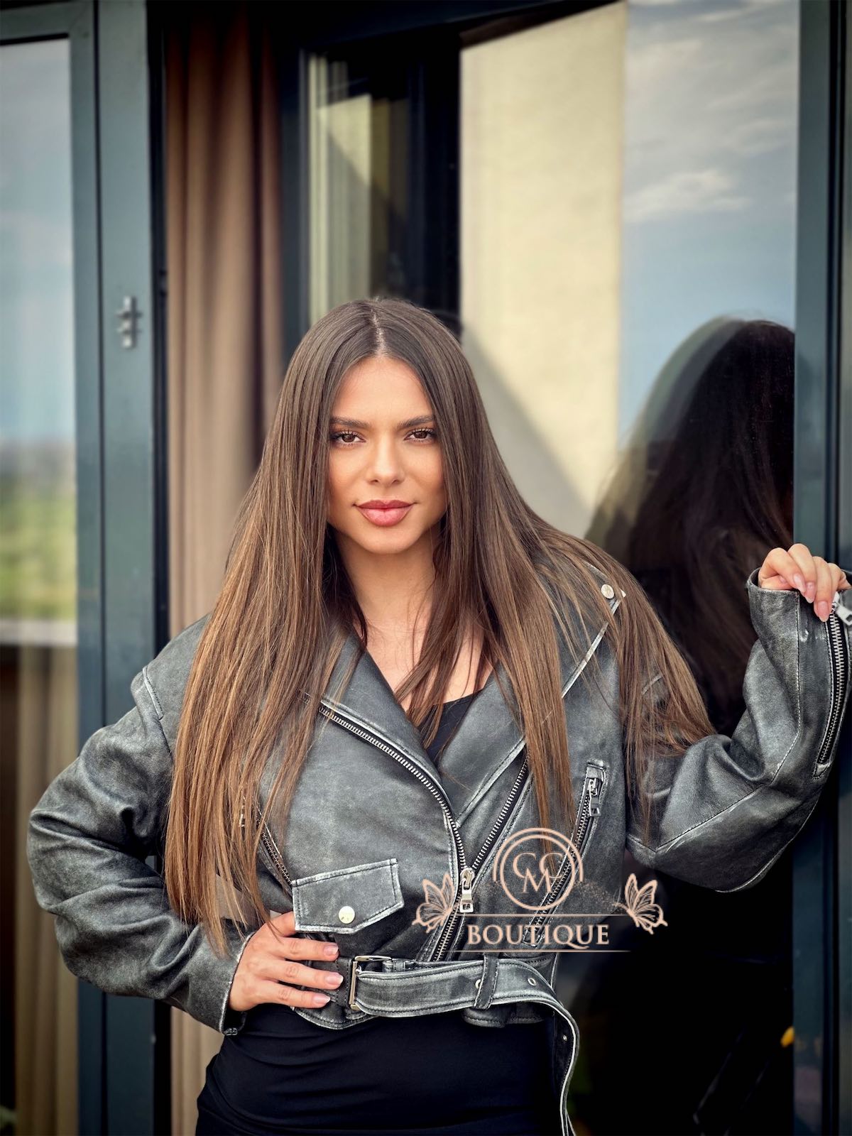 Nu vei trece neobservată cu această superbă jachetă din piele naturală.