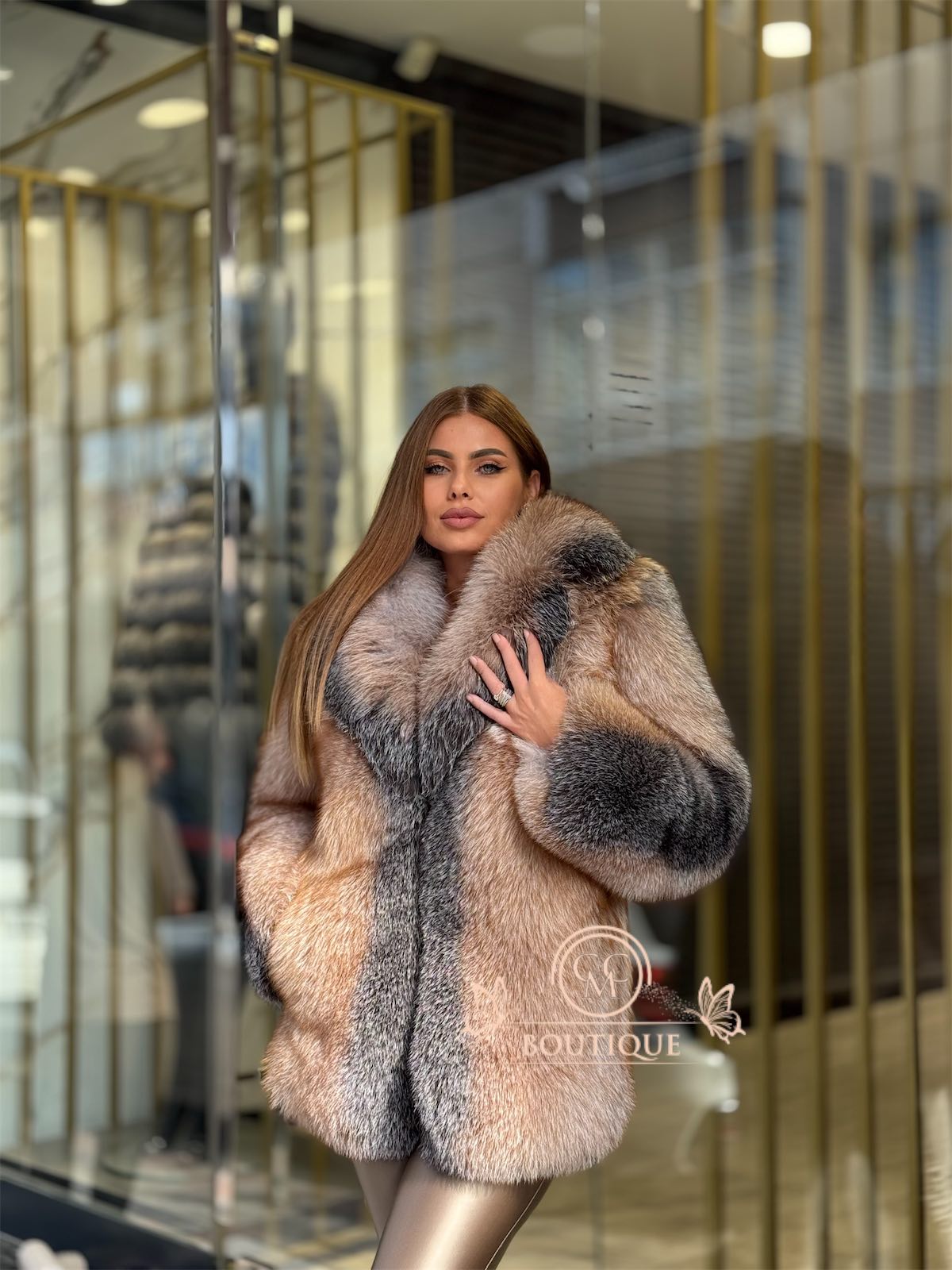 Această piesă de lux impresionează prin volum, eleganță și rafinament, fiind concepută pentru femeile care apreciază naturalețea autentică a blănii de vulpe.