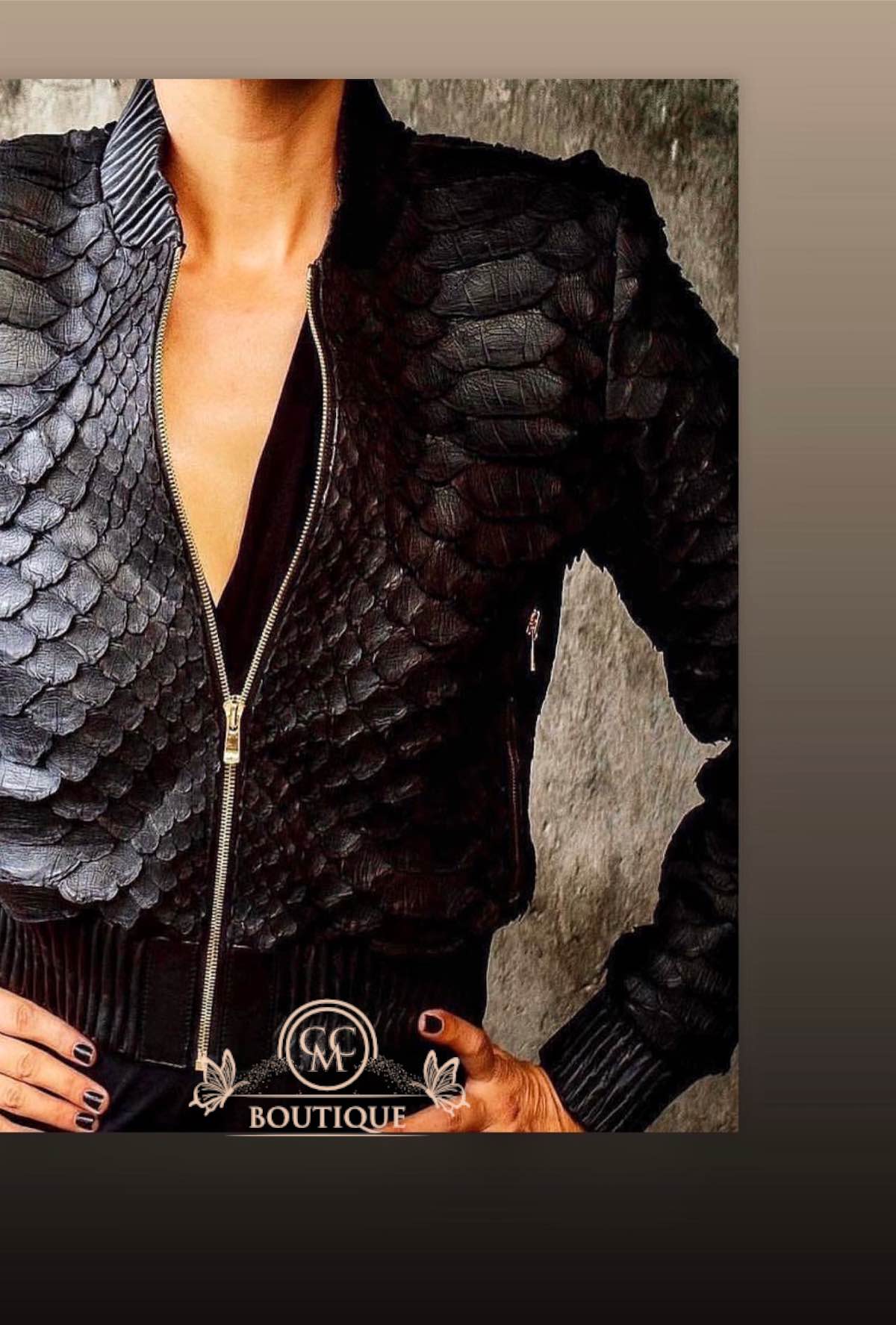 Jachetă din piele de piton exotică, realizată manual, cu design personalizat.