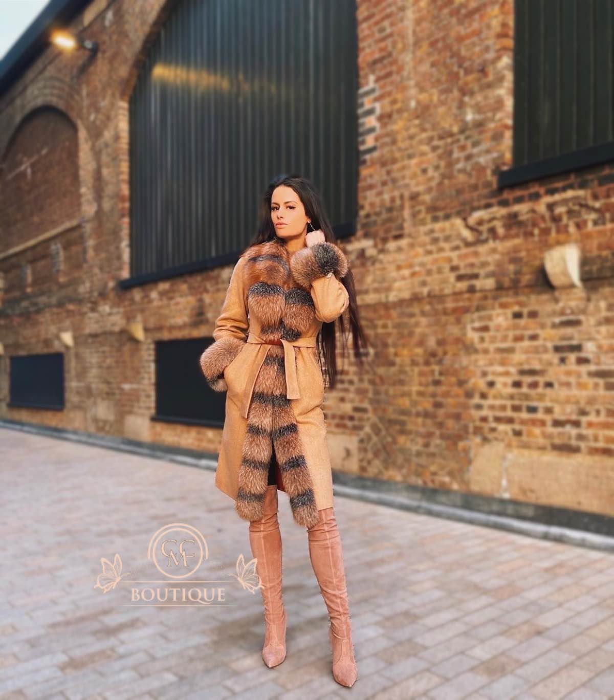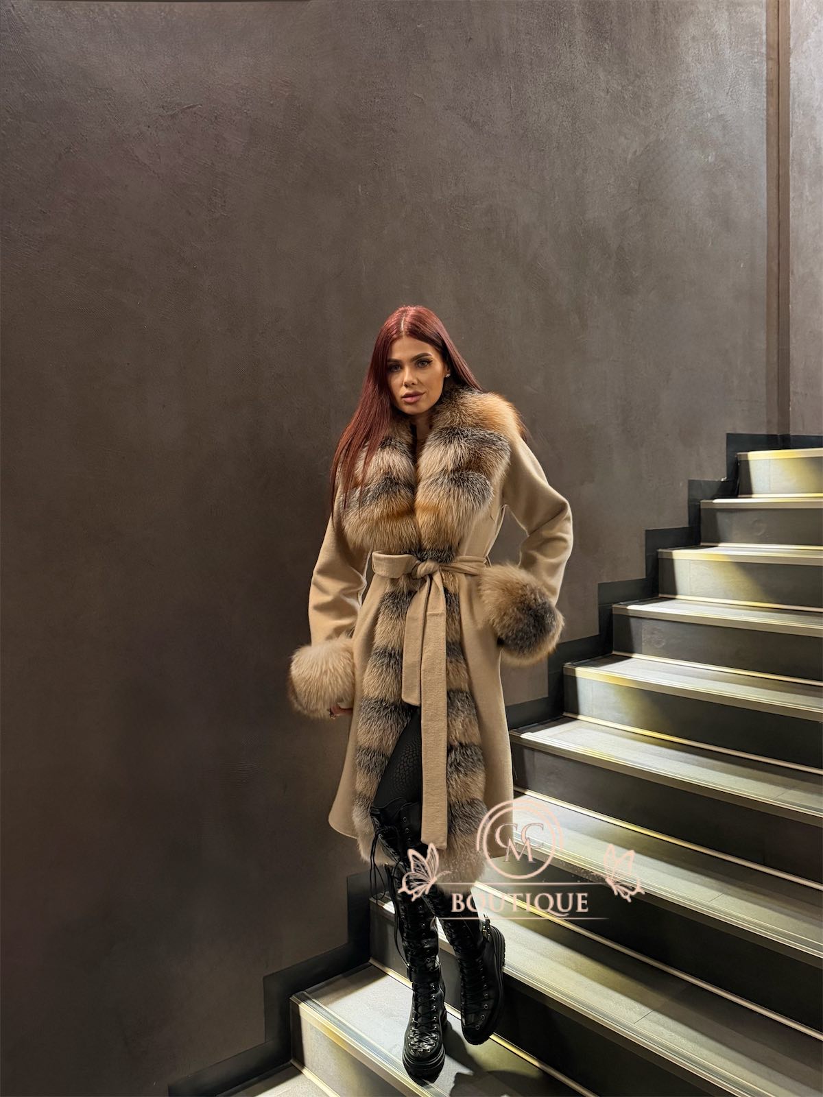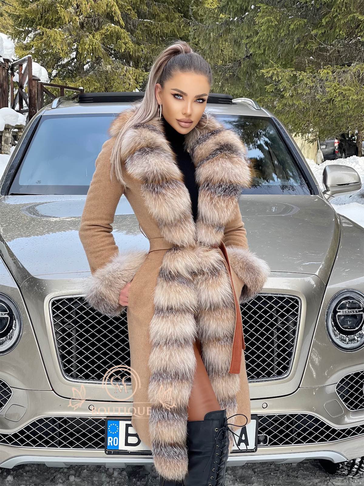 Gulerul de blană poate fi ales ton pe ton, pentru un aspect rafinat, sau într-o nuanță diferită, pentru un accent elegant.